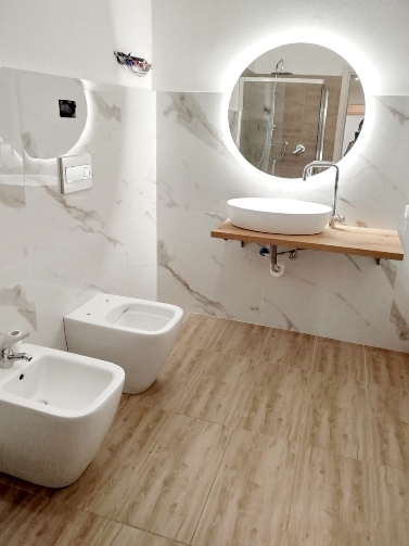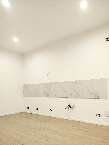 La soluzione, ubicata al piano rialzato, è così composta: ingresso su ampio soggiorno con cucina a vista, due camere entrambe matrimoniali oltre ad un una cameretta/studio, servizi finestrati.