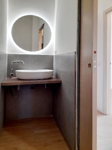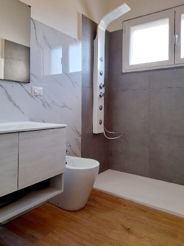 Sono presenti le seguenti finiture: pavimenti in pvc effetto legno, porta blindata, videocitofono, infissi pvc doppio vetro con apertura vasistas, sistema di allarme, climatizzazione presente in tutti gli ambienti con pompa di calore.