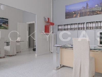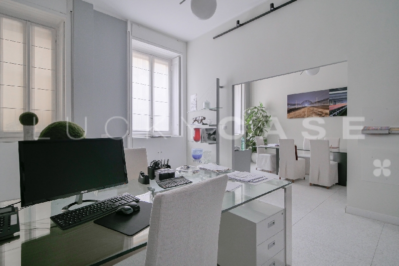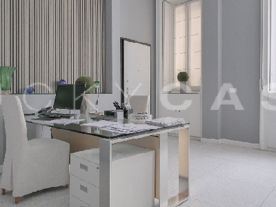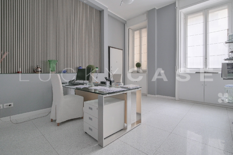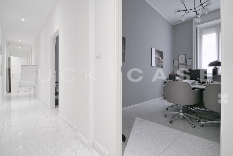 Si accede all'edificio attraverso la corte principale nella quale è presente il servizio di portineria dal lunedì al venerdì con orario continuato dalle 8.30 alle 18.00. L'immobile è così suddiviso: ingresso su primo ampio ambiente con taglio regolare, secondo ambiente semiaperto sul primo con altro accesso da corridoio di collegamento con il terzo ambiente, alle estremità del corridoio troviamo due bagni completi.
